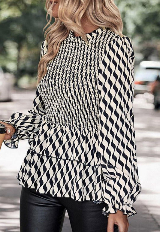 Sold outWavy Print Tiered Peplum Blouse