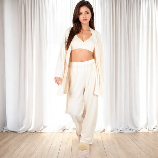 Anna-Kaci Women's 3-Piece Lounge Set with Tie-Front Cardigan and Ribbed Pants