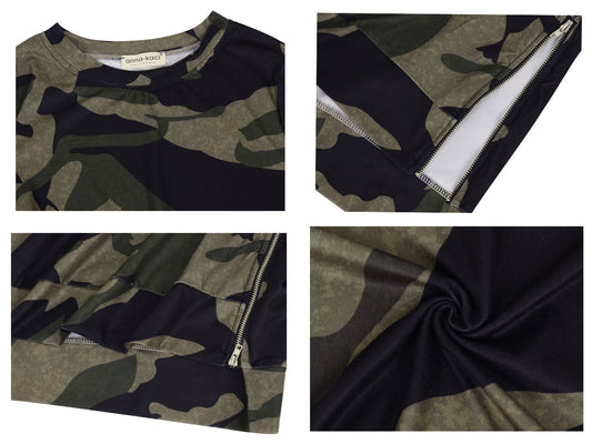 Anna-Kaci Women's Camouflage Long Sleeve Pullover Tunic Top Fall Crewneck Sweatshirts