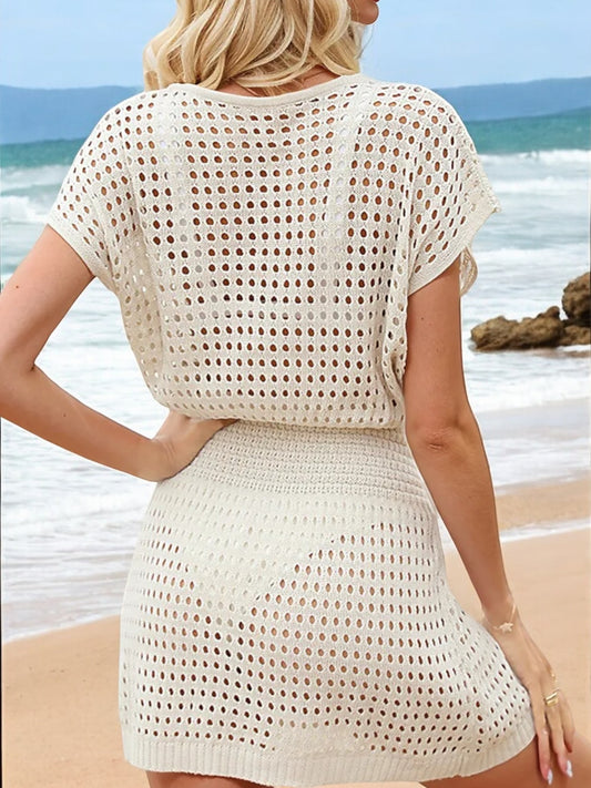 Anna-Kaci Women's Crochet Knit Cover-Up Dress with Short Sleeves and Semi-Sheer Design
