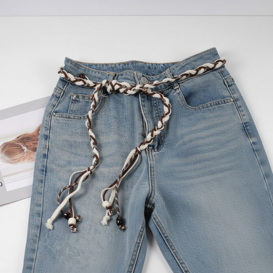 Anna-Kaci Women's Braided Rope Belt with Wooden Bead Details and Tassel Ends 63x0.8in