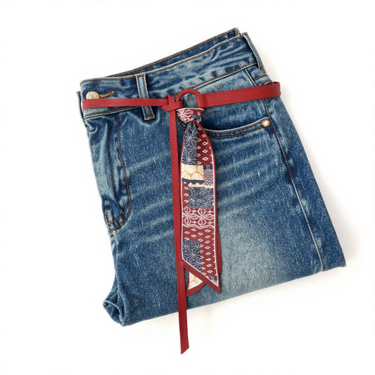 Anna-Kaci Women's Faux Leather Belt with Patterned Scarf Tie and Metal Loop Detail 53x0.8in