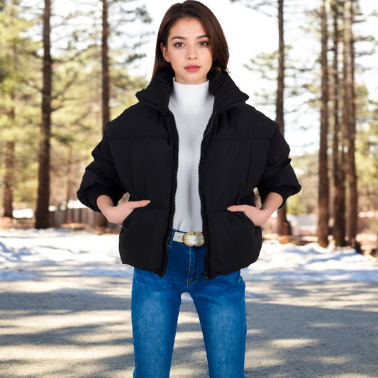 Anna-Kaci Women's Oversized Quilted Puffer Jacket with Zipper Front and Ribbed Cuffs