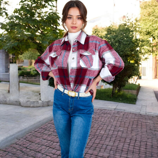 Anna-Kaci Women's Plaid Shacket Jacket Long Sleeve Button Down Fall Shirts Coat
