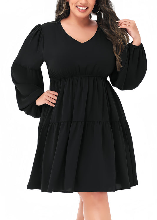 Anna-Kaci Women's Plus Size Tunic Dress V Neck Long Sleeve Smocked Casual Loose Flowy Swing Shift Dresses