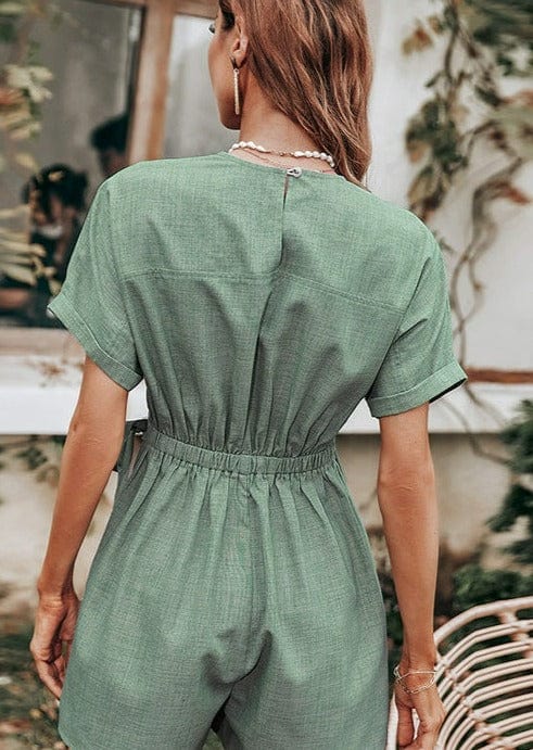 Tie Front Belted Cuffed Short Sleeve Textured RomperVendor:Anna-KaciRegular price $44.00Regular priceUnit price per-