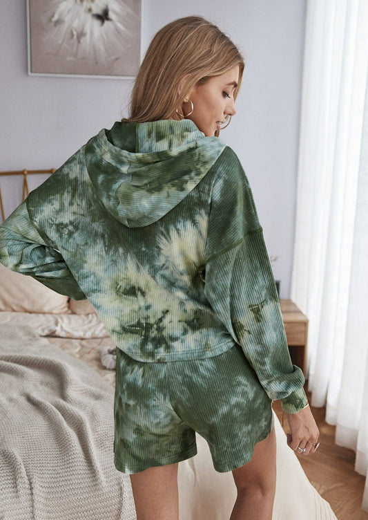 Sold outTie-Dye Ribbed Hoodie Lounge Set