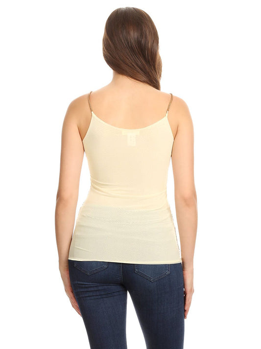 Anna-Kaci Womens Spaghetti Strap Sequin Metal Chain Shiny Party Club Camisole Tank Top