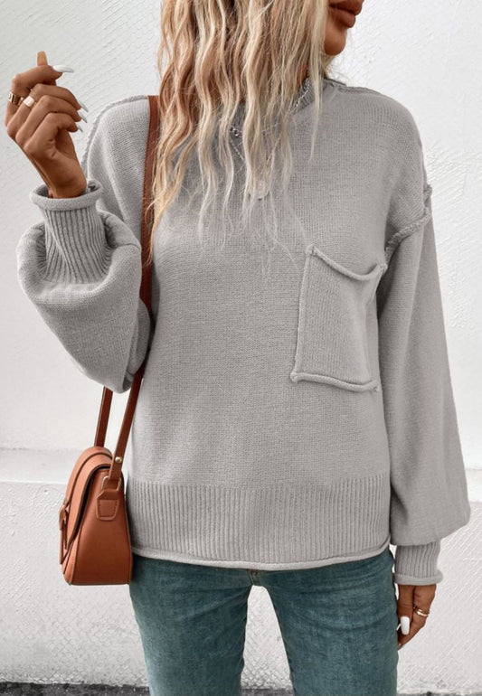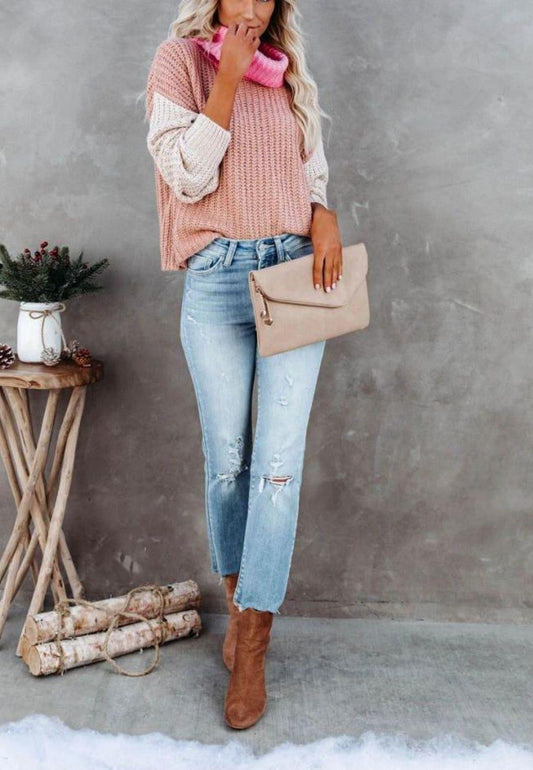 Color Blocked Cowl Open Neck Dolman Sleeve Sweater