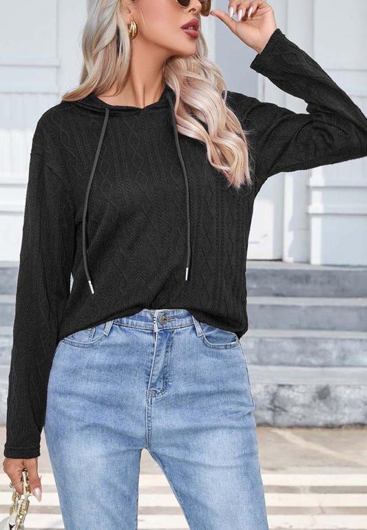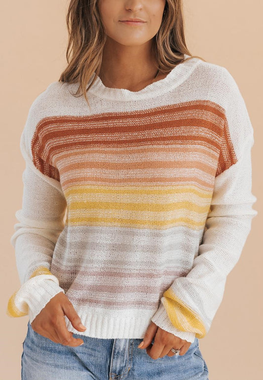 Mocha Stripe Color Blocked Eyelet Raglan Sleeve Hoodie Pullover Sweater