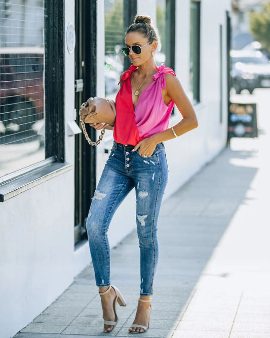 Soft Daisy V-Neck Bell Sleeve Blouse