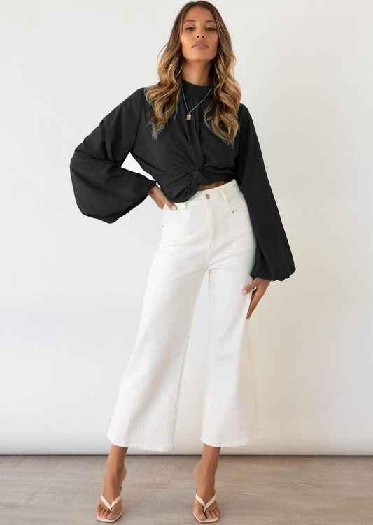 Sold outShoulder Cutout Lace Sleeve Shirt