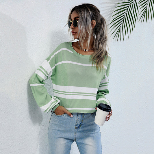 Sweaters Long Sleeve Crew Striped Oversized Knitted Pullover Tops