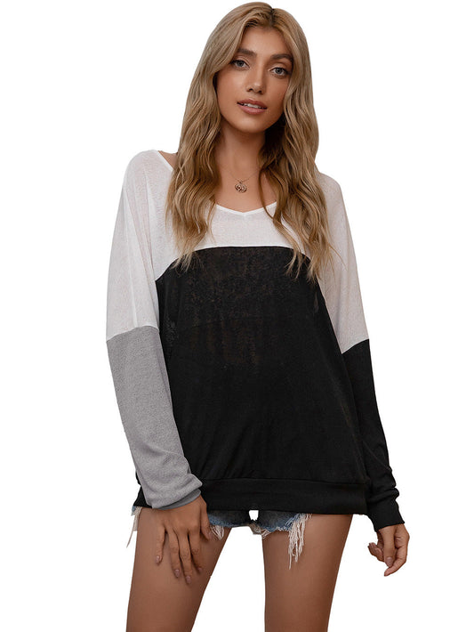 Color Block V-Neck Sweater with Heart Patterned Sleeves and Oversized Fit