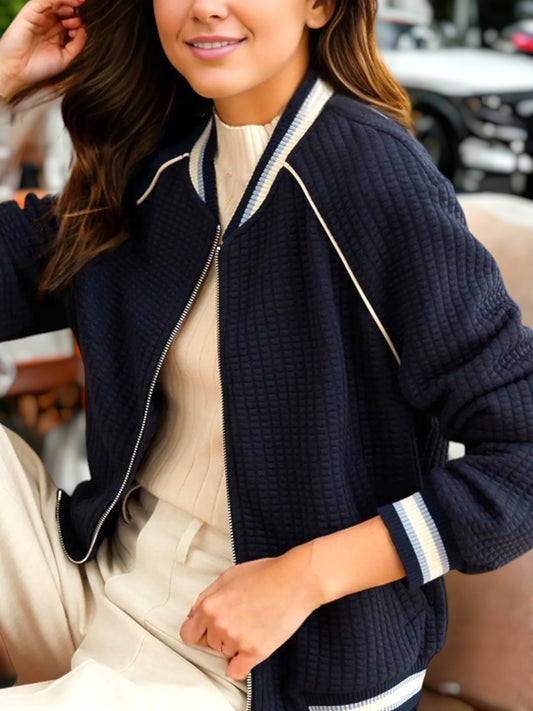 Classic Zipper Splice Varsity Jacket with Regular Sleeves