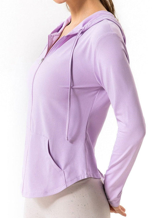 Breathable Active Drawstring Zip-Up Hoodie Jacket