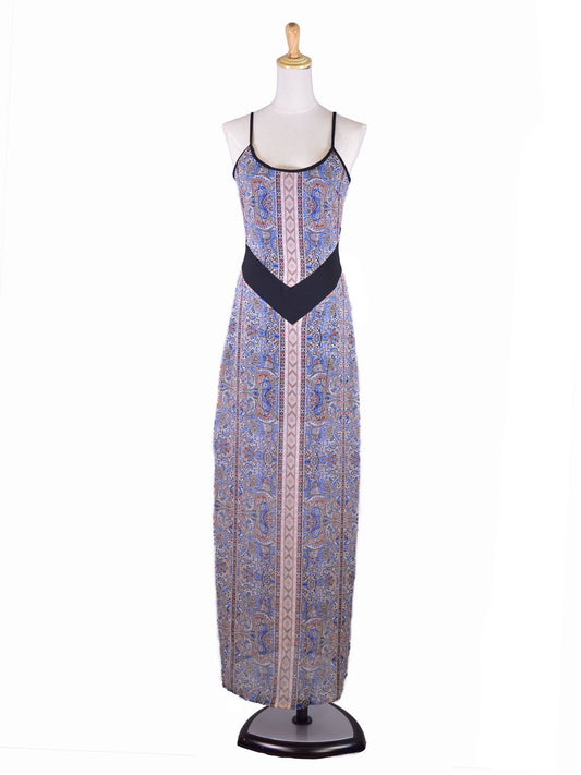 En Creme Exquisite Sexy Back Paisley Floral Print Side Slit Chiffon Maxi Dress
