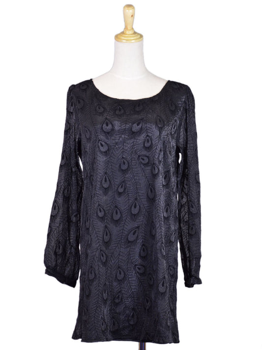 En Creme Enchanting Peacock Feather Long Sleeves Evening Cocktail Sheath Dress