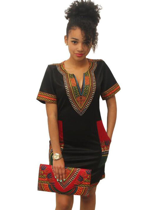 Dashiki Print Tribal Short Sleeve Mini Dress