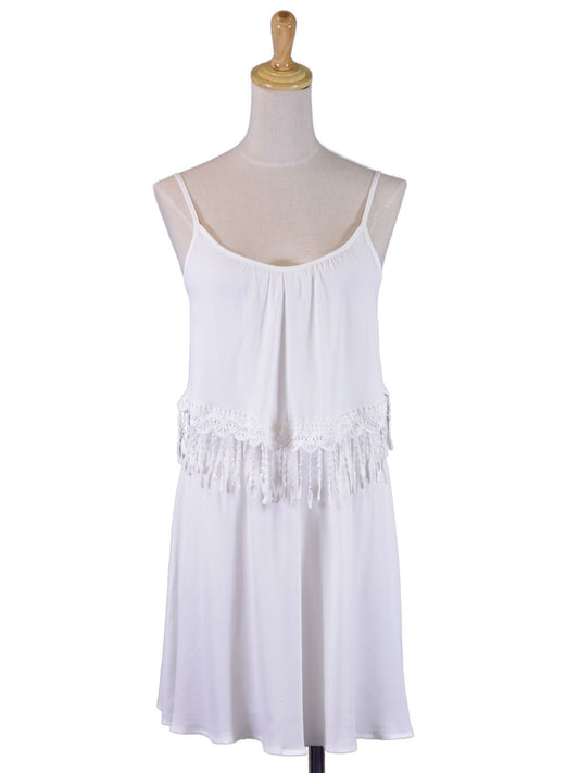 Lush Modern Flapper Inspired Cluny Fringe Trimmed Woven Bridal Party Dress