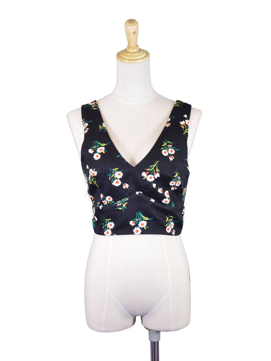 Lush Lovely Cute Oriental Floral Quilt Textured Print V-Neck Cropped Tank Top