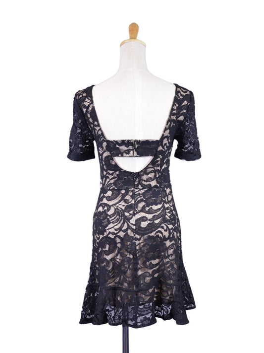 Lush Night Cocktail Floral Lace Design Ruffle Hem Short Sleeves Fit Flare Dress