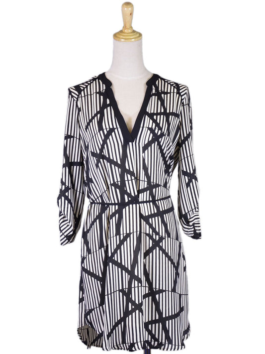 Lush Spirited Professional Abstract Black & White Contrast Sleeves Shirt Dress