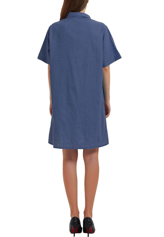 Long Sleeve V-Neck Shift Dress with Pleated Detail