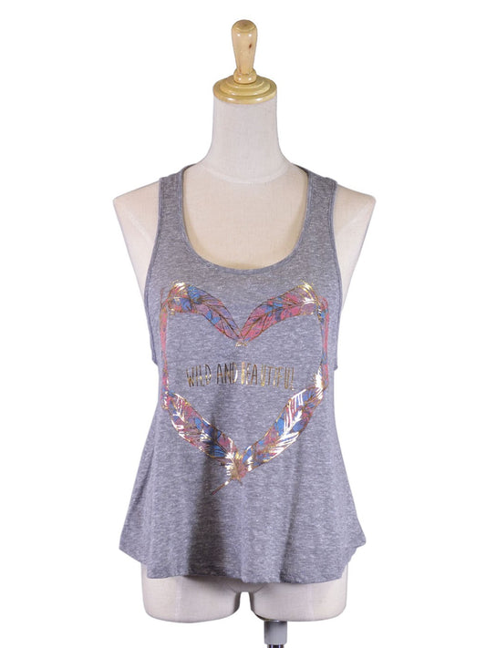 Michelle Easygoing Wild and Free Peaceful Feather Print Racerback Knit Tank