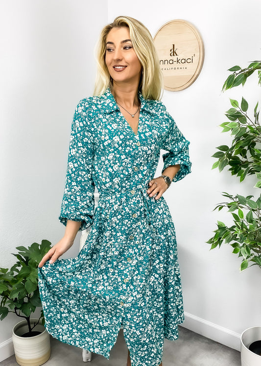 V Neck Floral Button Down Dress