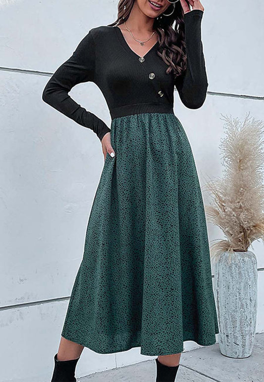 Floral Print V Neck Midi Dress