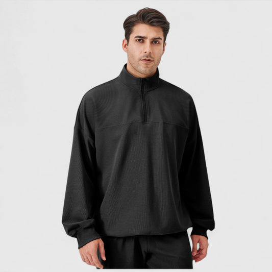 Anna-Kaci Active Men's Oversized Quarter Zip Pullover with Drop Shoulders and Ribbed Cuffs for Relaxed Casual Styling