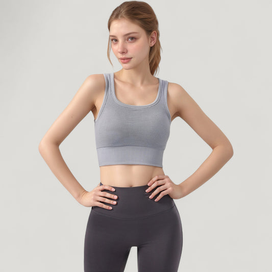 Anna-Kaci Active Women's Ribbed Seamless Sports Bra with Scoop Neck and Wide Straps