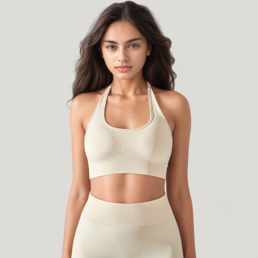 Anna-Kaci Active Women's Seamless Active Set with Halter Neck Top and Fitted Shorts