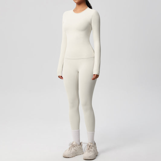 Anna-Kaci Active Women's Long Sleeve Crew Neck Top and High Waist Leggings Set with Slim Fit Design