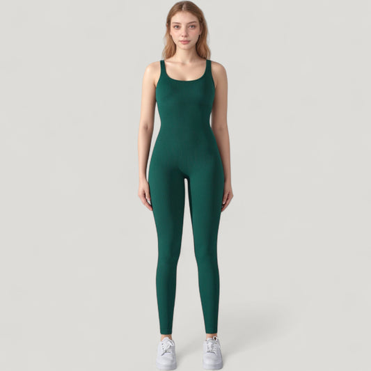 Anna-Kaci Active Women's Ribbed Knit Sleeveless Jumpsuit with Scoop Neckline and Bodycon Fit