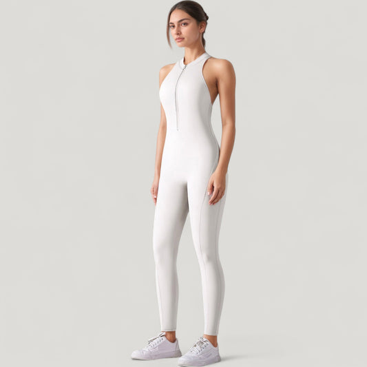 Anna-Kaci Active Women's High Neck Sleeveless Activewear Jumpsuit with Back Cutout and Front Zip Closure