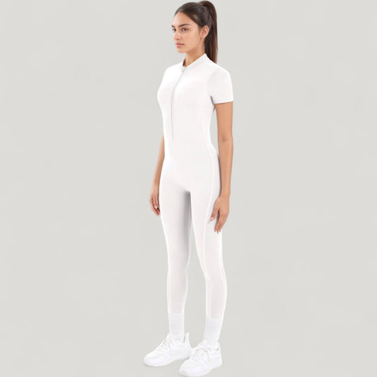 Anna-Kaci Active Women's Short Sleeve High Neck Open Back Zip-Up Jumpsuit with Fitted Silhouette and Scrunch Back Detail