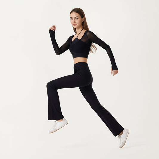 Anna-Kaci Active Women's Ribbed Knit Flare Pants with Wrap Tie Waistband and High Waist Silhouette