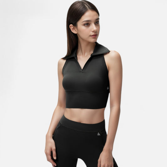 Anna-Kaci Women's Sleeveless Collared Crop Top with V-Neckline