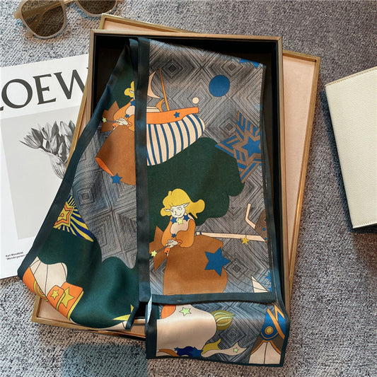 Anna-Kaci Women's Silky Rectangular Neck Scarf with Abstract Print Border Design for Versatile Styling