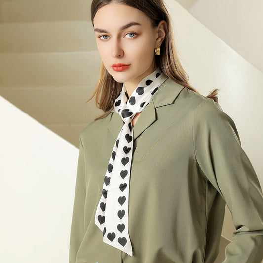 Anna-Kaci Women's Silky Square Neck Scarf with Black Heart Pattern for Hair and Bag Styling