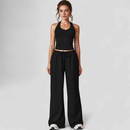 Anna-Kaci Active Women's Contrast Trim Halter Tank Top with Fitted Silhouette and Double Strap Detail