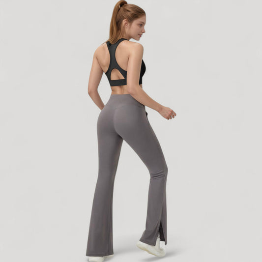 Anna-Kaci Active Women's Crossover Waist Flare Lounge Pants in Soft Woven Fabric with Relaxed Fit and Streamlined Silhouette