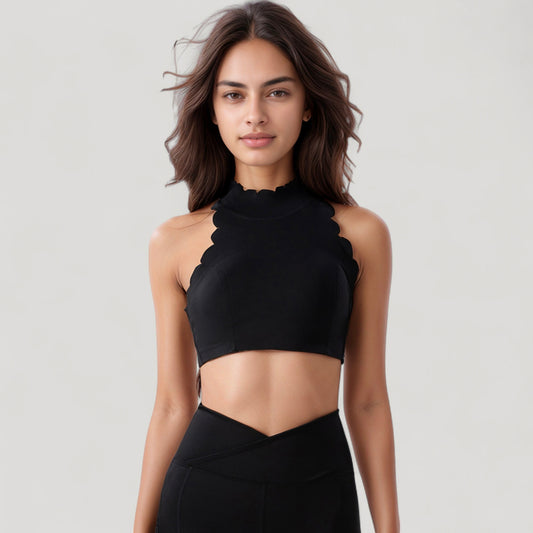 Anna-Kaci Active Women's High Neck Scallop Edge Sports Bra with Sleeveless Cut and Stylish Back Detailing for Light Activity