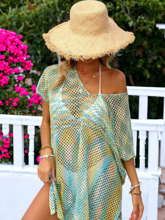 Túnica de punto suelta con hombros descubiertos y mangas de murciélago