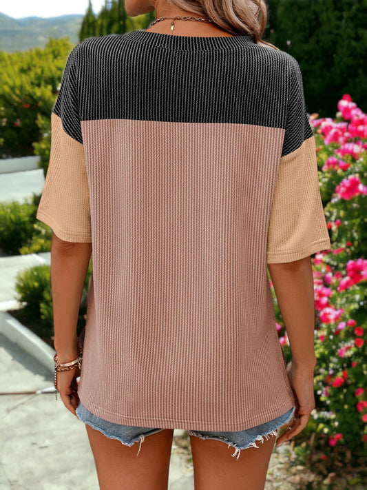 Camiseta holgada, ligera, con cuello redondo y mangas cortas y diseño en bloques de color