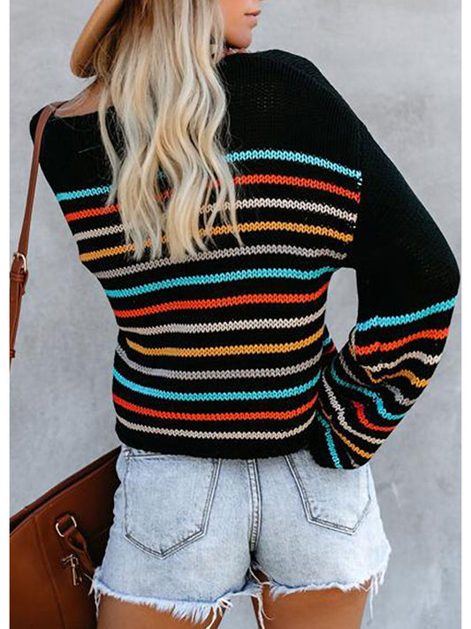 Top de punto con escote en V y mangas midi holgadas y texturizado