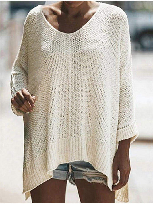 Suéter de punto holgado con mangas de murciélago y aberturas laterales