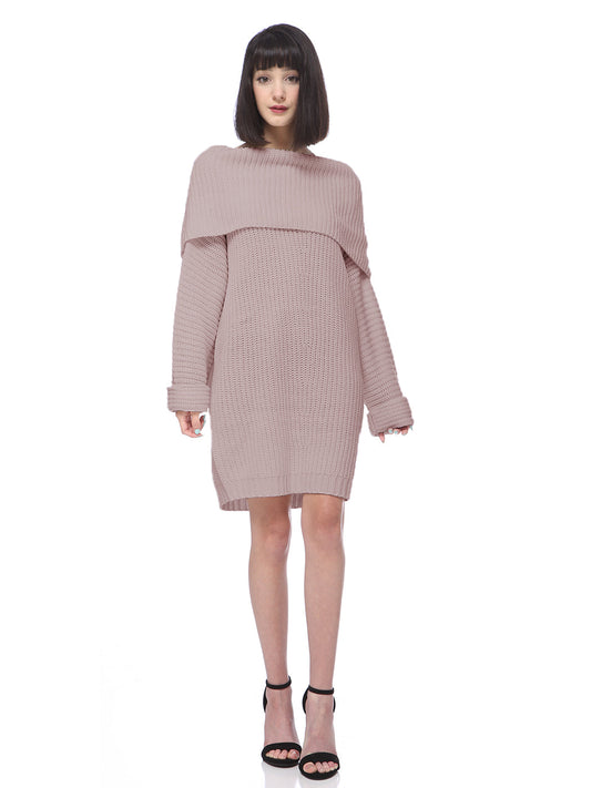 Vestido tipo suéter de punto cómodo con hombros descubiertos